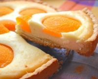 Песочный пирог с консервированными персиками и творогом