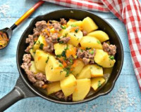Картошка, тушёная с фаршем на сковороде