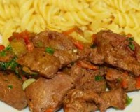 Говяжья печень, тушеная с морковью и луком