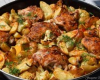 Куриные бёдра, запечённые с овощами в духовке