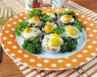 Перепелиные яйца в шампиньонах в духовке