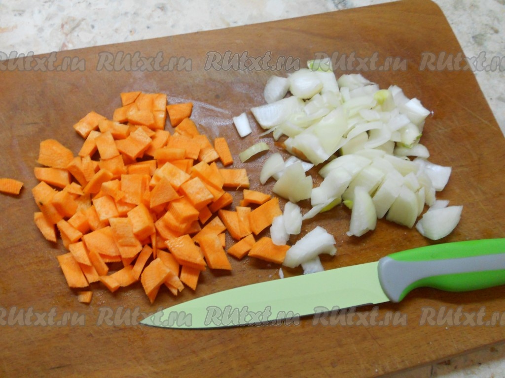 Репчатый лук и морковь очистить и нарезать маленькими кубиками.