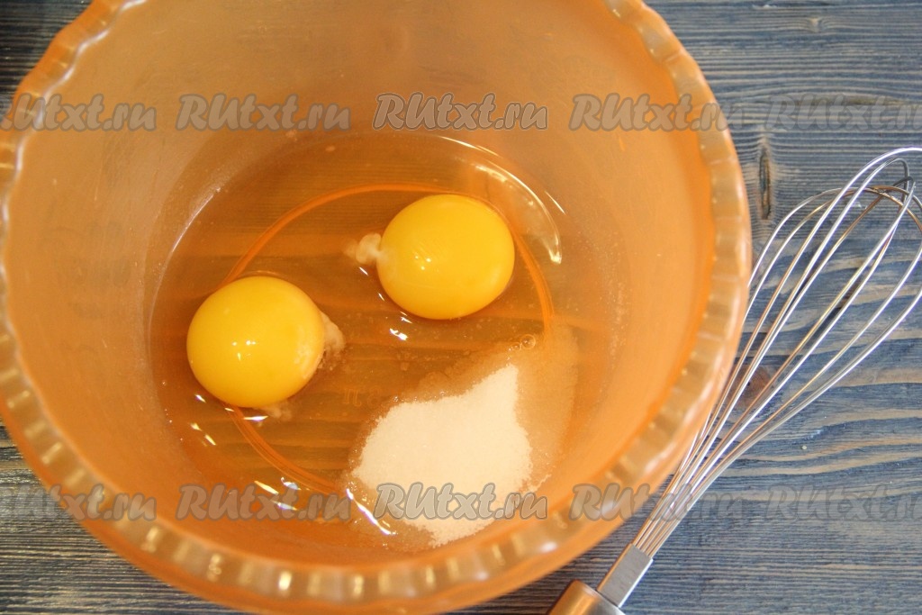 Яйца соединить с сахаром и солью.