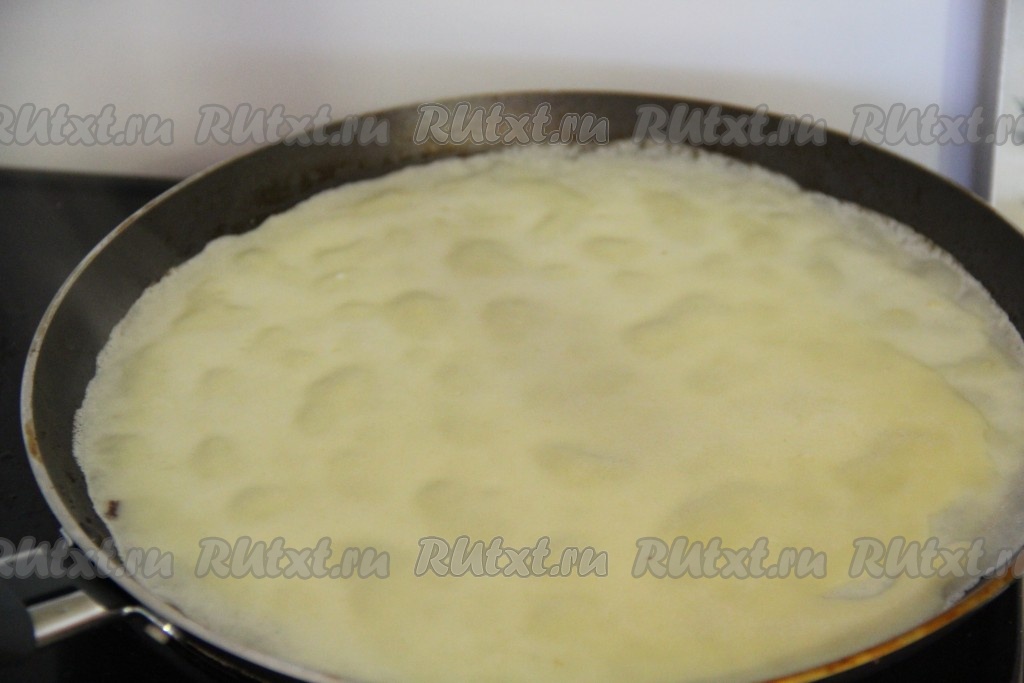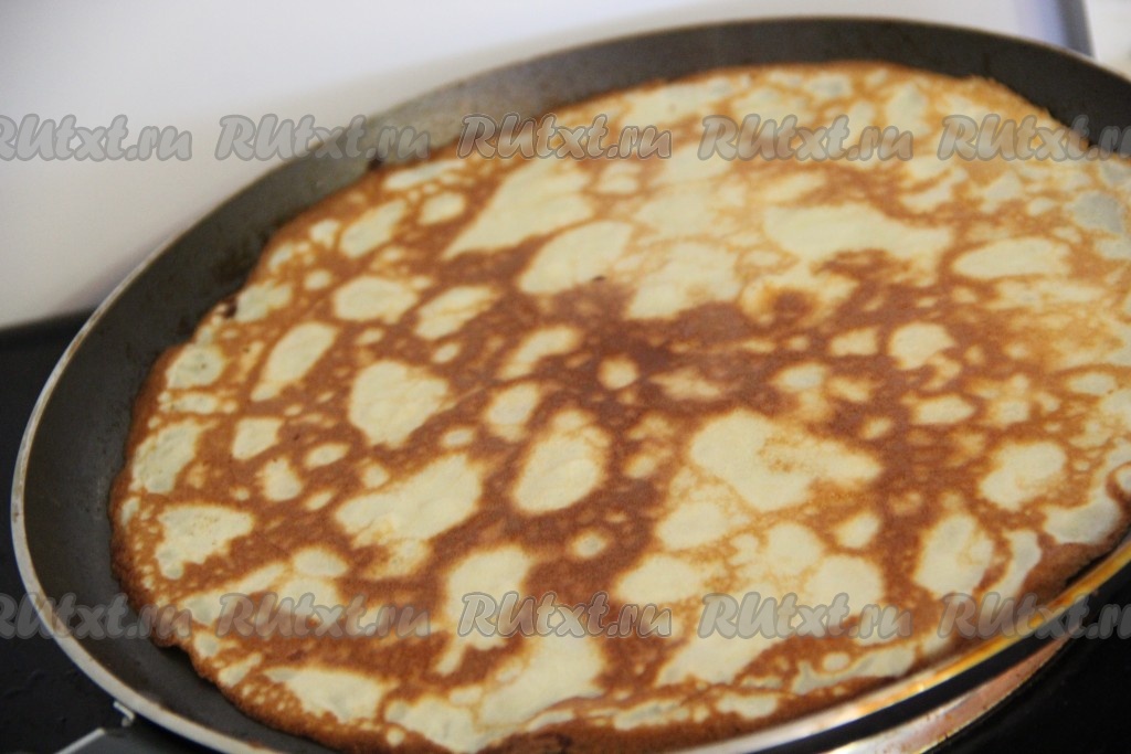 Выпекать блины с двух сторон до золотистого цвета.