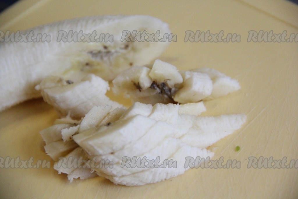 Банан очистить и нарезать соломкой.