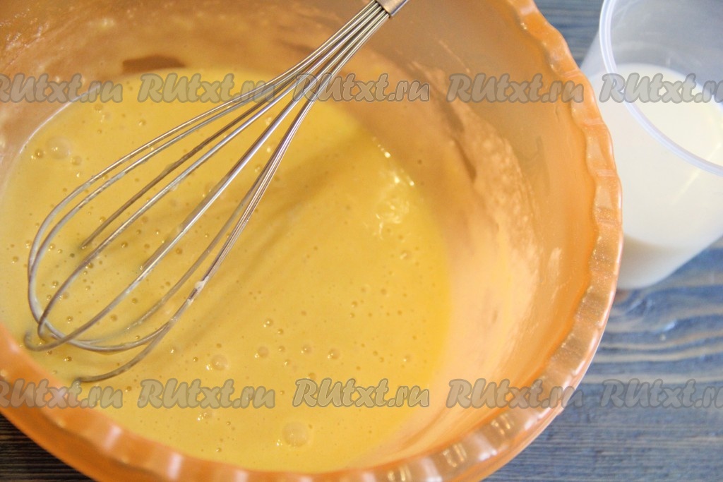 Всё тщательно перемешать до однородного состояния. Затем влить в тесто молоко.