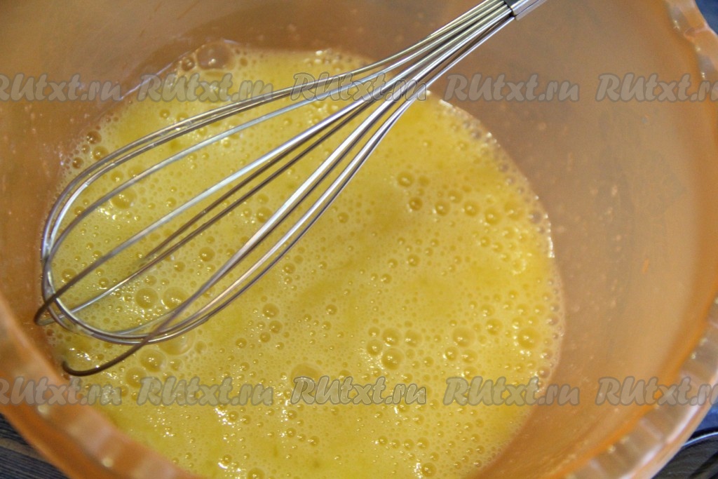 С помощью венчика слегка взбить яйца.