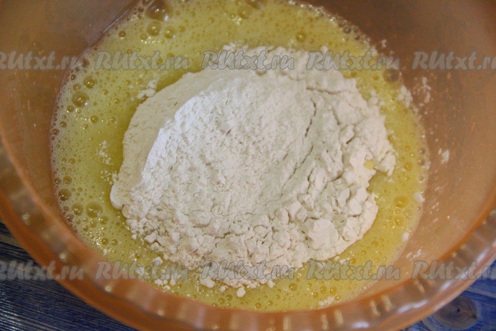 Затем всыпать муку.