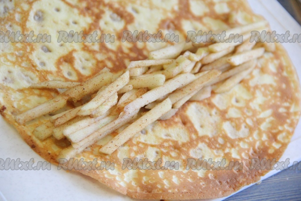 На блин выложить яблочную начинку.