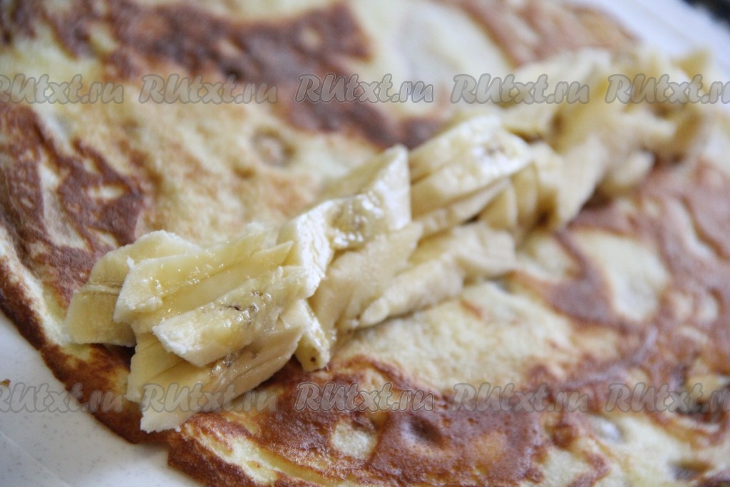 Выложить дольки банана на блин.