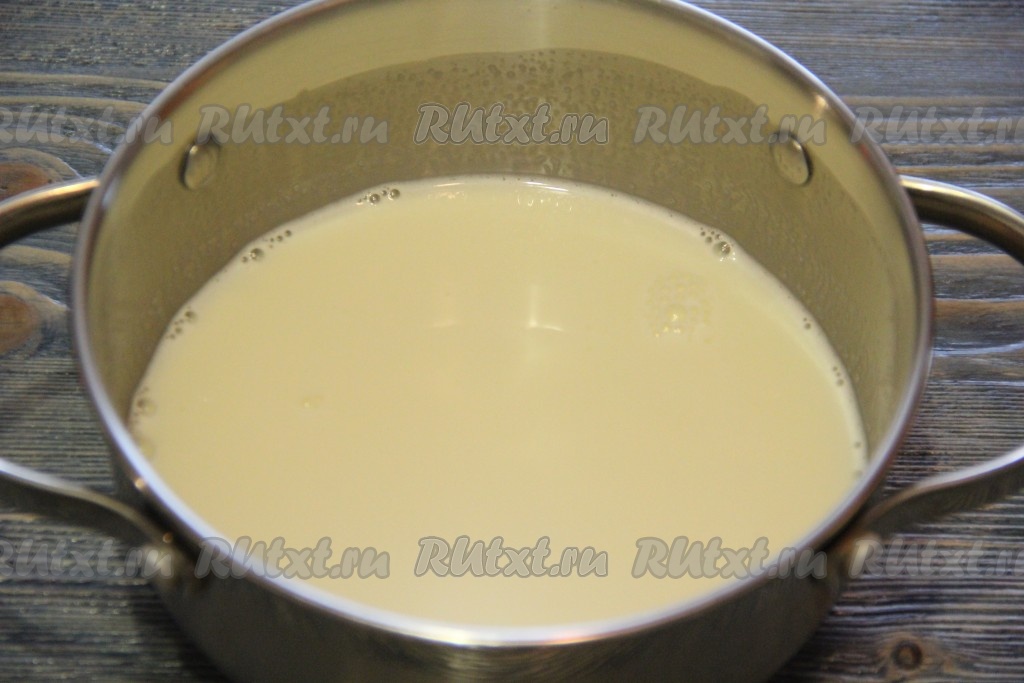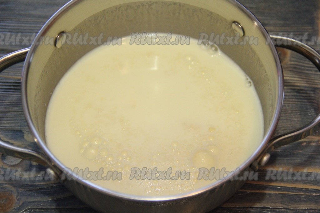 Желатин залить холодным молоком и оставить на 10-15 для набухания.