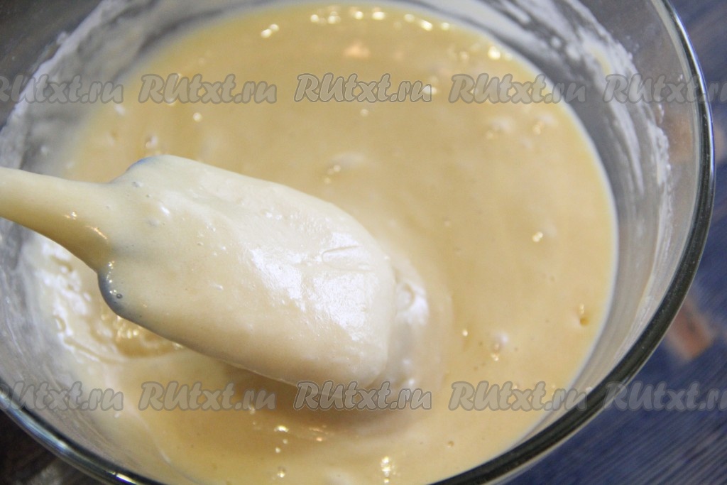 Всё тщательно перемешать силиконовой лопаточкой. Тесто получится не густым, но очень воздушным и лёгким.