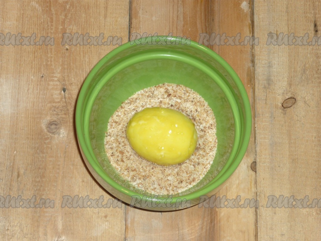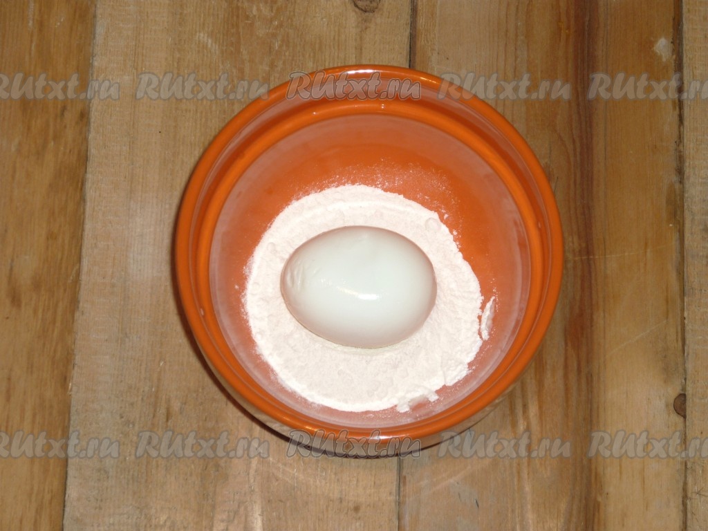 Для начала нужно сварить яйца всмятку (можно сварить и вкрутую, но яйца всмятку в панировке получаются особенно вкусными). Для того чтобы сварить яйца всмятку, в кипящую воду аккуратно с помощью ложки опускаем вымытые яйца и варим на небольшом огне 5-6 минут, затем достаем яйца и отправляем в холодную воду, чтобы легче было снять скорлупу. Для панировки приготовить три тарелки. В одну насыпать панировочные сухари, во вторую - муку, а в третью - разбить сырое яйцо и разболтать с щепоткой соли. Очищенные яйца обвалять сначала в муке.