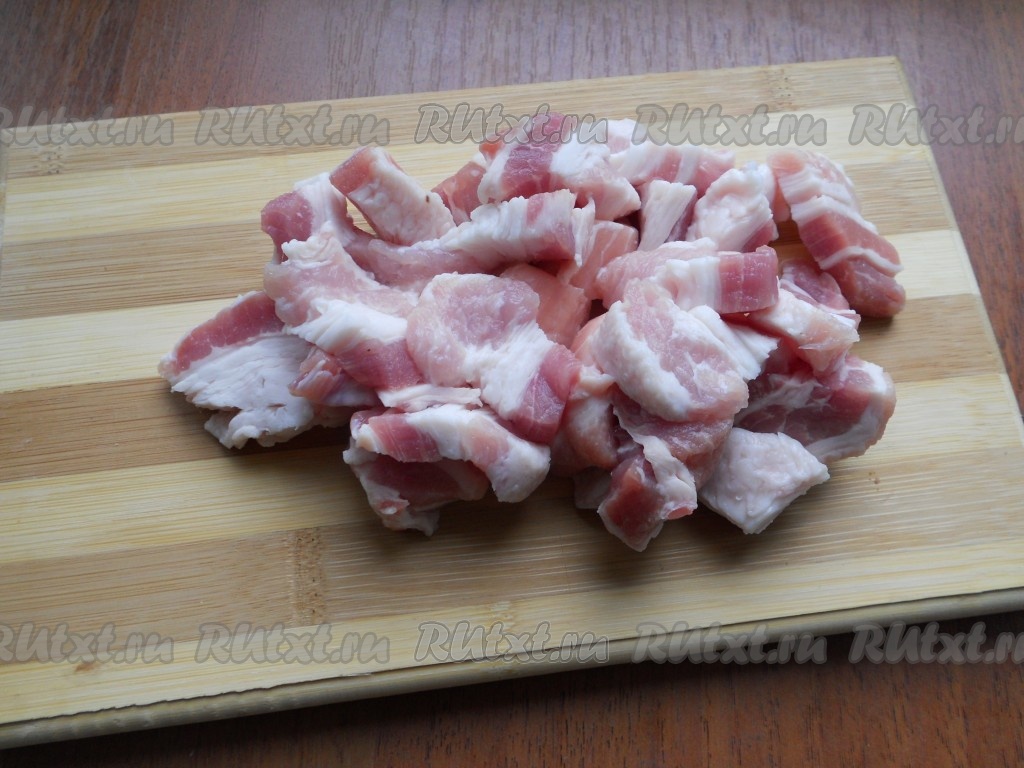 Мясо нарезать небольшими кусочками.