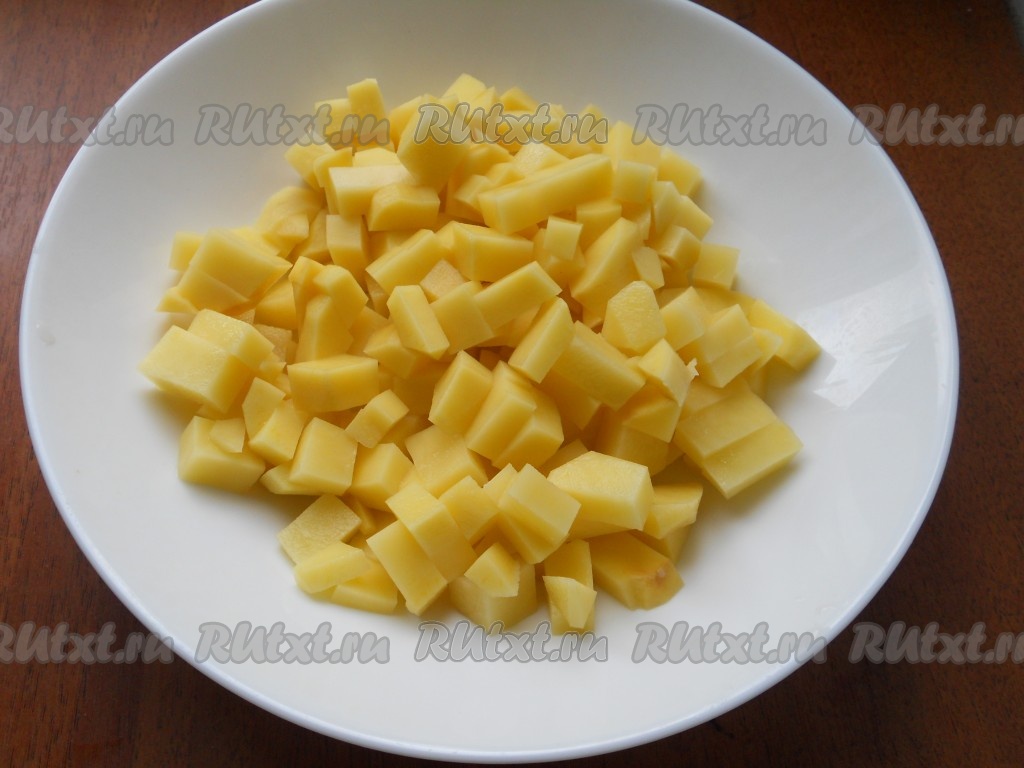 Картофель очистить и нарезать кубиками.