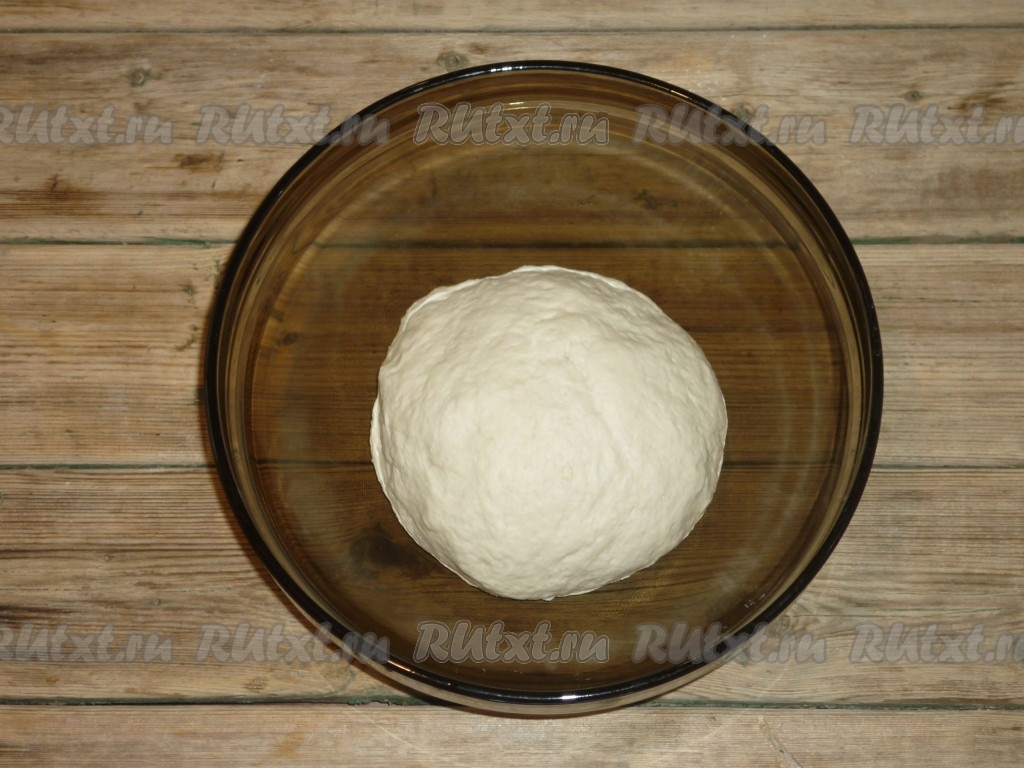 Накрыть тесто полотенцем и оставить в тёплом месте на 30-40 минут для подхода. За это время тесто должно увеличиться в объеме.