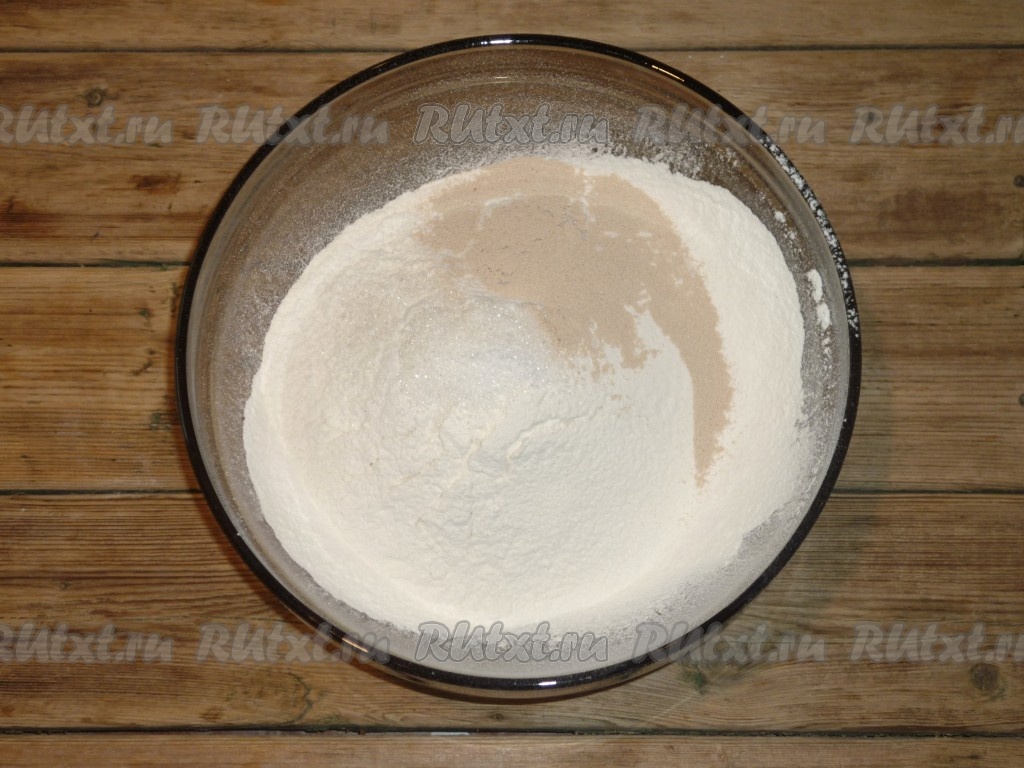 Влить тёплую воду и растительное масло. Замесить эластичное, мягкое дрожжевое тесто.