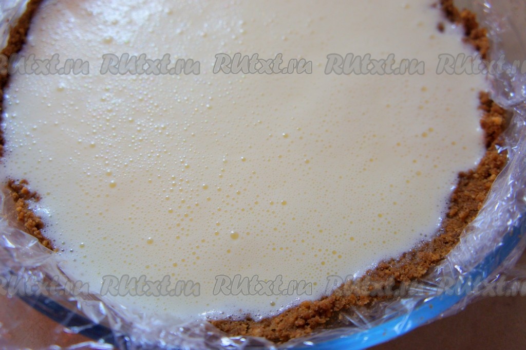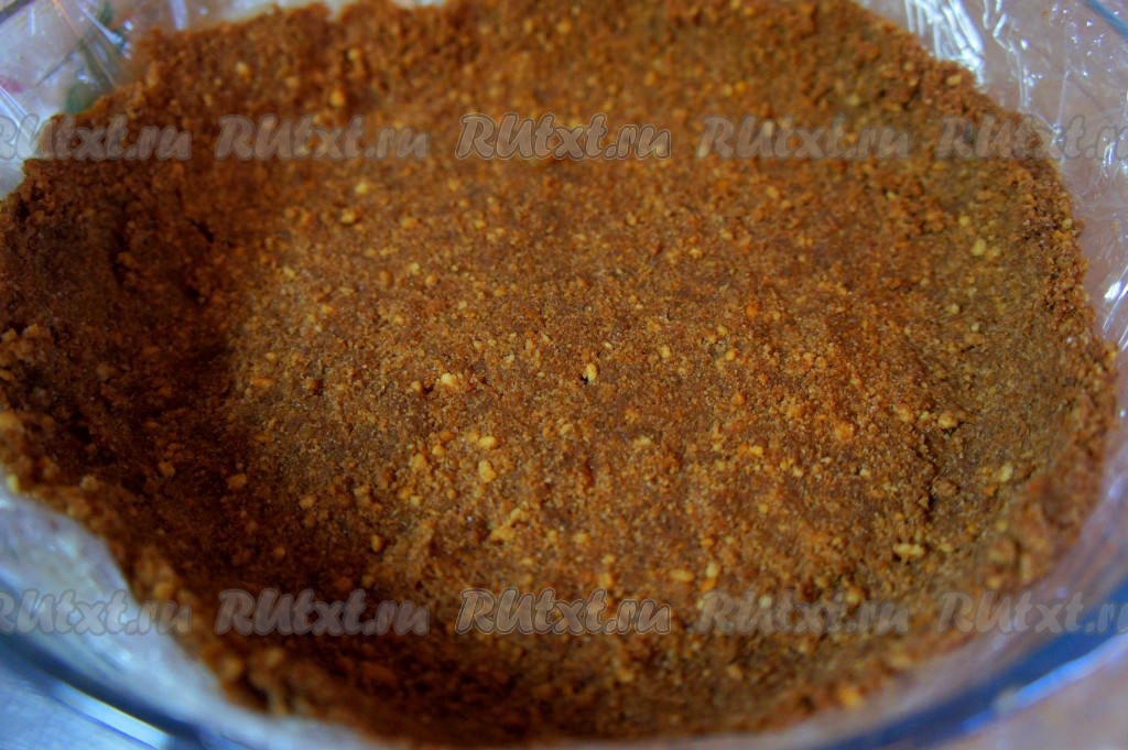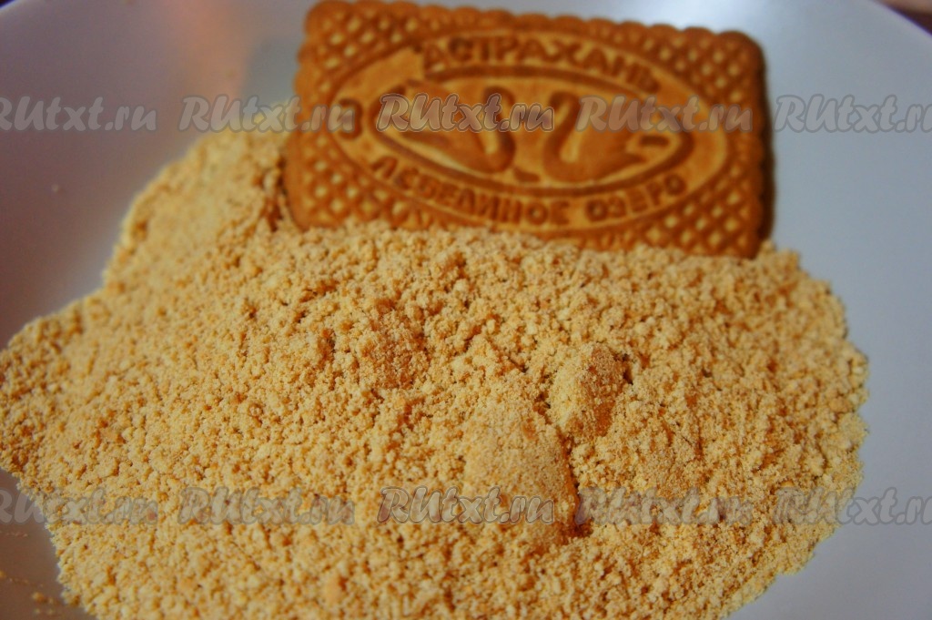 Печенье измельчить. Удобно использовать скалку и пакет.