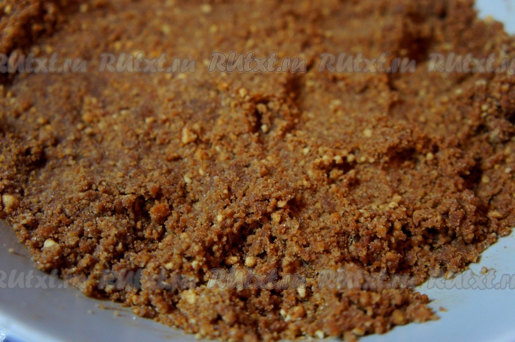Сливочное масло растопить, добавить к измельченному печенью. Перемешать.