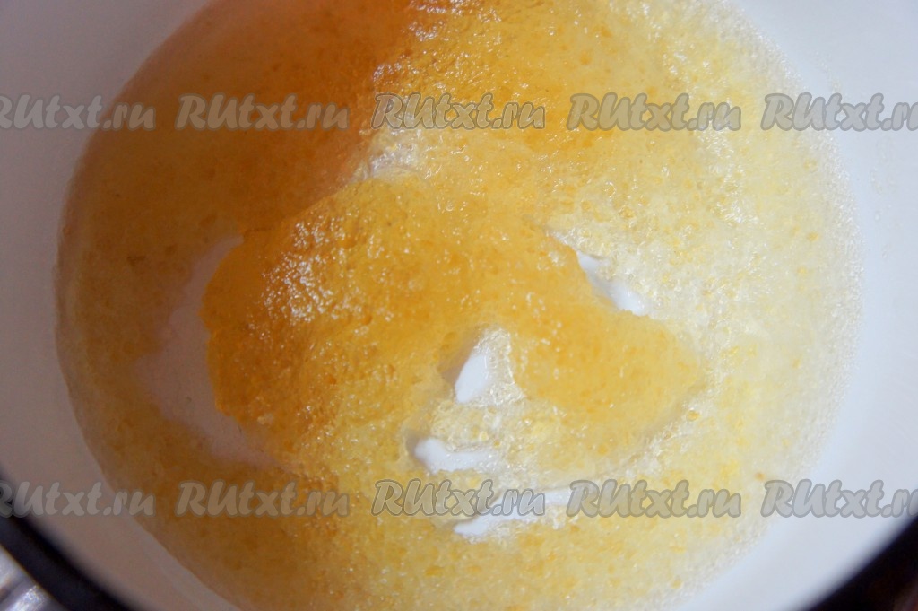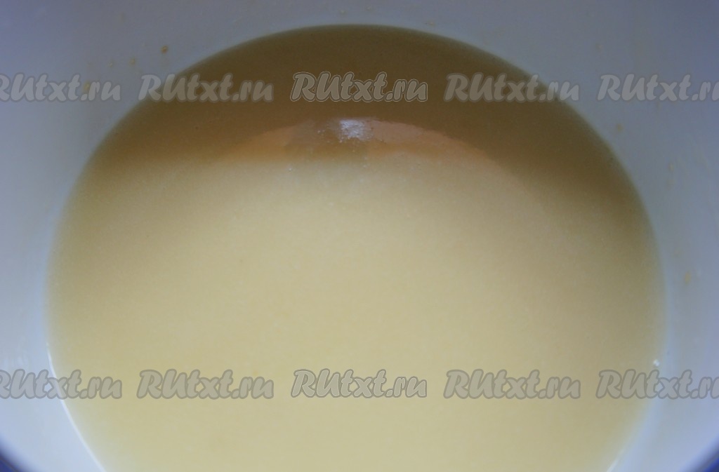 Желатин развести в 3 столовых ложках холодной кипяченой воды. Дать постоять и разбухнуть в течение 5-7 минут.