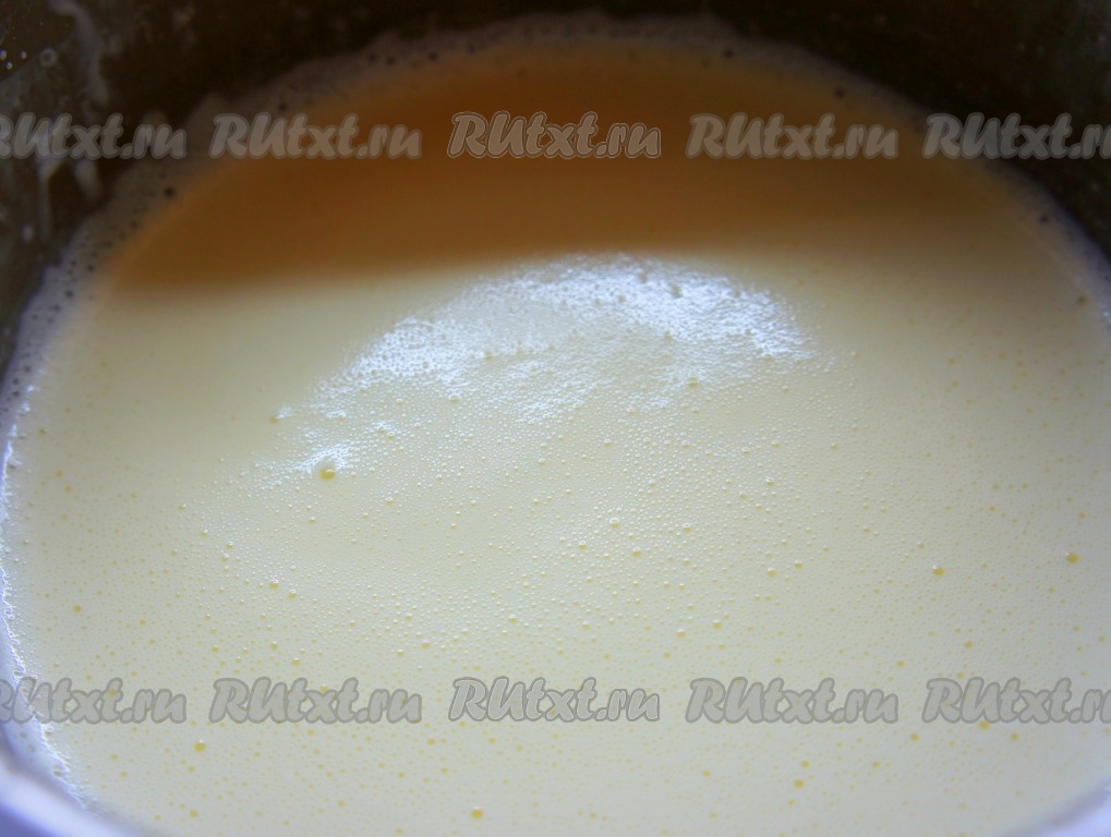 К сливкам добавить сахарную пудру, ваниль. Тщательно перемешать. Поставить сливки на огонь на 5 минут, постоянно помешивать, нагреть, но не кипятить!