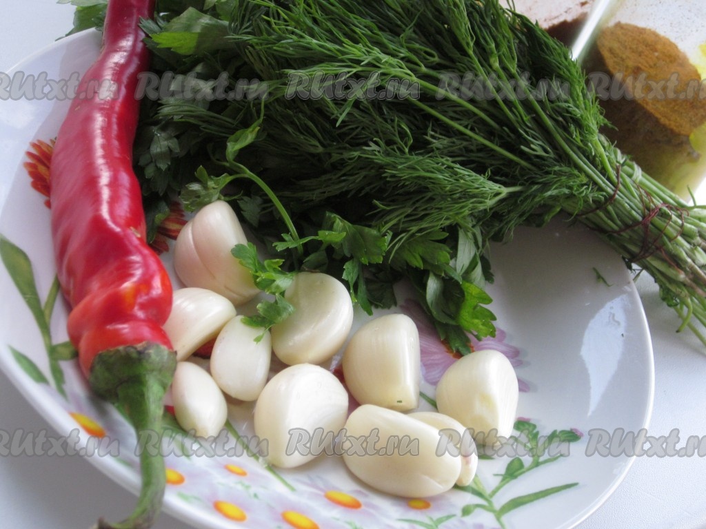 Моем укроп, кинзу, острый перец. Чистим чеснок.