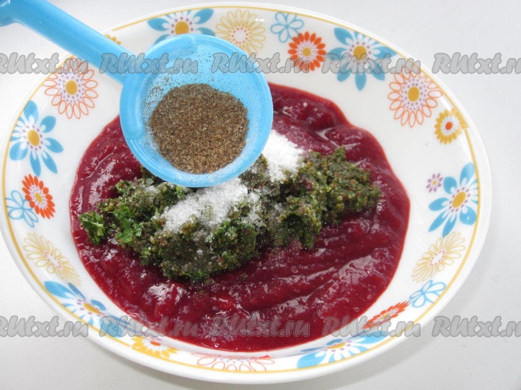 Соус тщательно перемешиваем и ставим на очень слабый огонь. Постоянно помешивая, варим ткемали, минут 5-7.