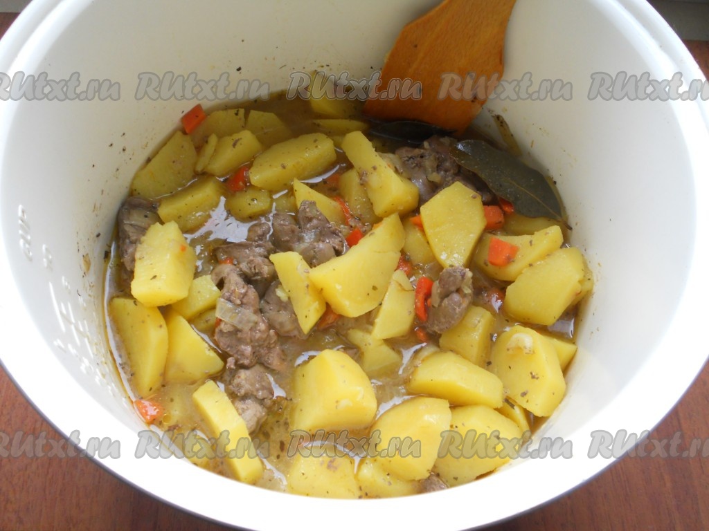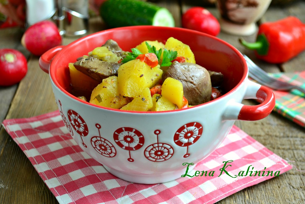 Куриная печень, приготовленная с картошкой в мультиварке, получается ароматной, вкусной, к столу подаём в в горячем виде.