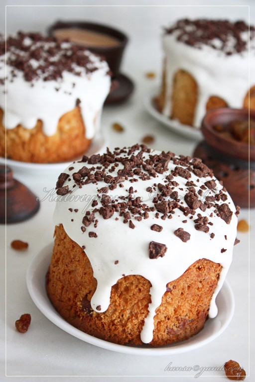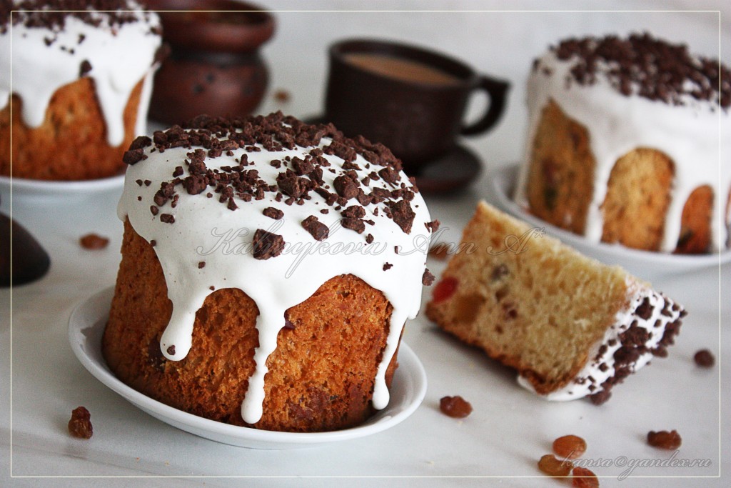 Сверху я посыпала шоколадом. Куличи, приготовленные без вымешивания теста, получаются очень вкусными.