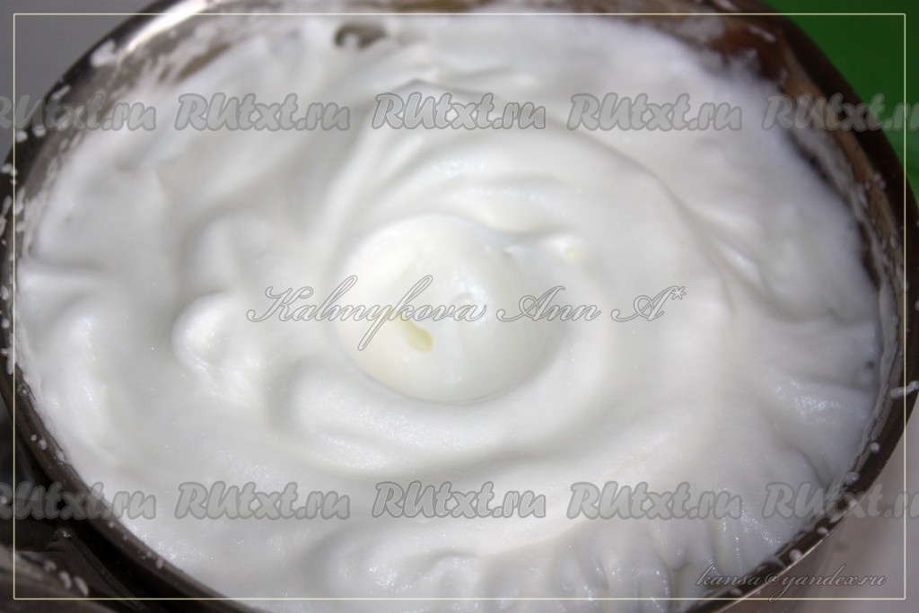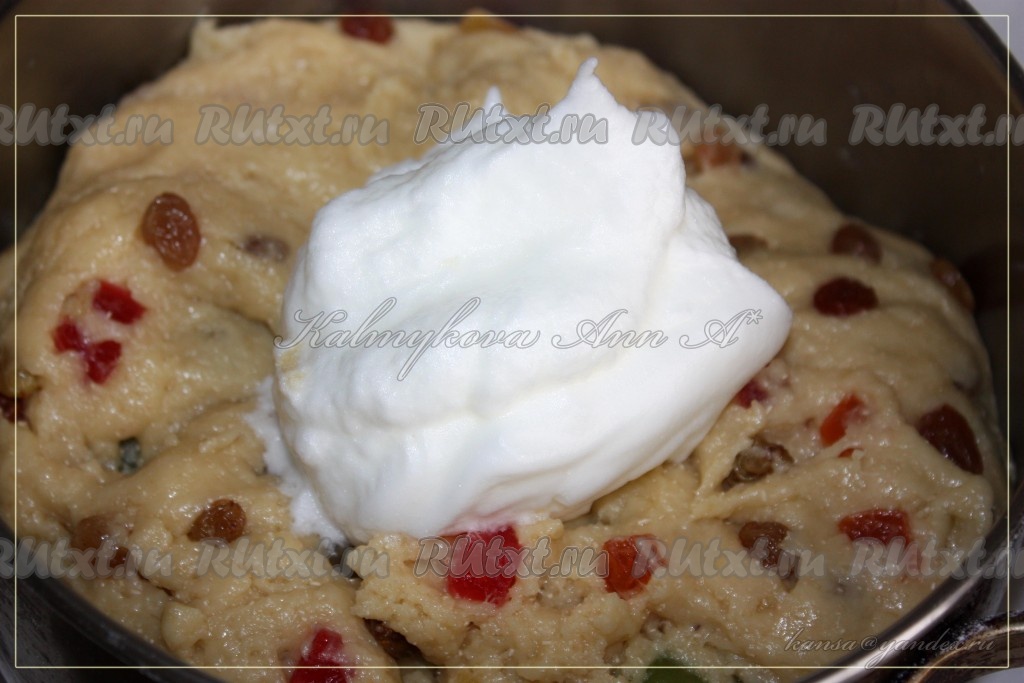 Аккуратно ввести взбитые белки ложкой в тесто.