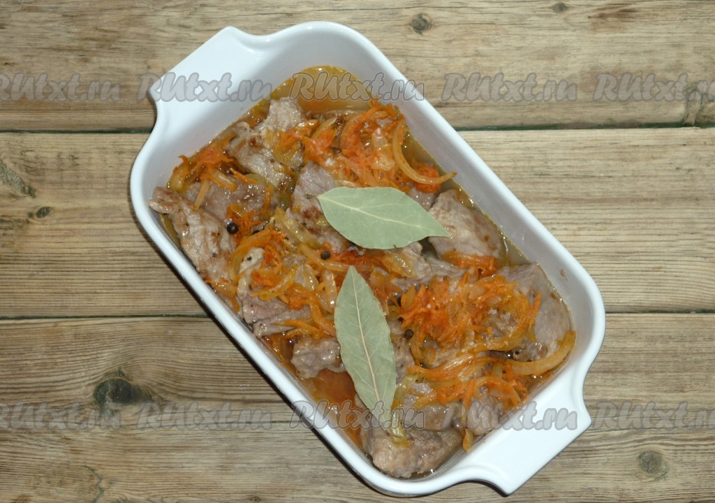 Поставить в разогретую до 180 градусов духовку и тушить говядину 1,5 часа.