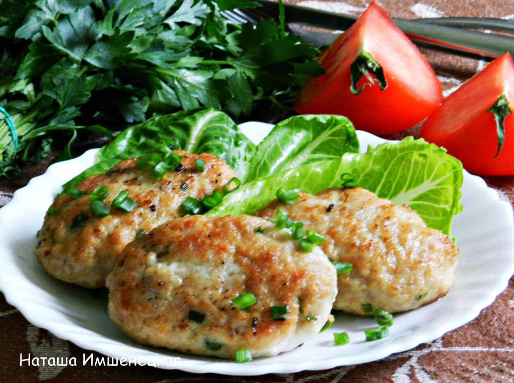 Вкусные и нежные котлеты с зеленым луком готовы.