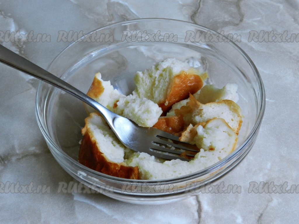 Белый хлеб размочить в горячем молоке или в воде, остудить.