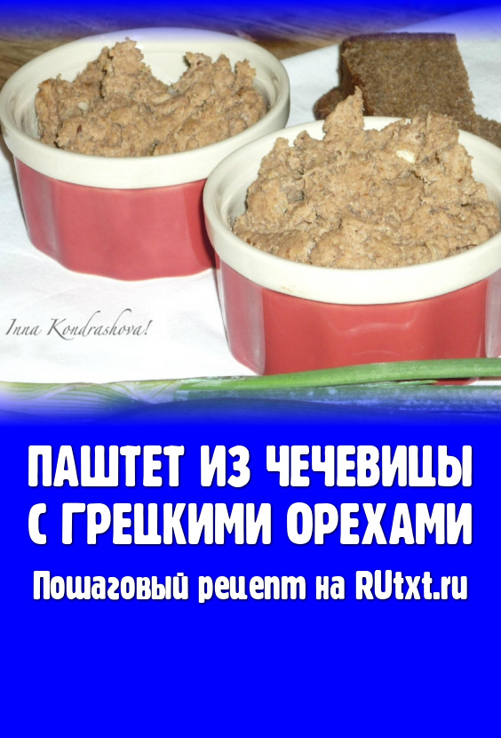Предлагаю рецепт полезного и вкусного блюда - паштета из чечевицы с грецкими орехами. Этот постный чечевично-ореховый паштет, поданный с хлебом, овощами и зеленью, станет прекрасным завтраком или перекусом. Чечевица содержит достаточно много растительных белков, которые хорошо усваиваются организмом, а орехи богаты витаминами и минералами. Поэтому этот паштет и отлично насытит, и порадует приятным вкусом, попробуйте!