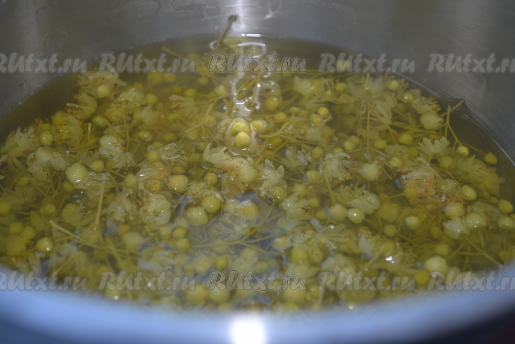 Выложить чистые цветочки липы в кастрюлю, залить водой и поставить на огонь, довести до кипения. Уменьшив огонь до минимума, варить минут 15-20. Затем убрать с огня и полностью остудить.