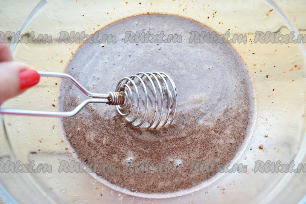 Добавляем воду комнатной температуры и тщательно перемешиваем. Удобно перемешивать массу венчиком, но можно использовать и миксер или блендер. Должна получиться однородная масса без комочков.