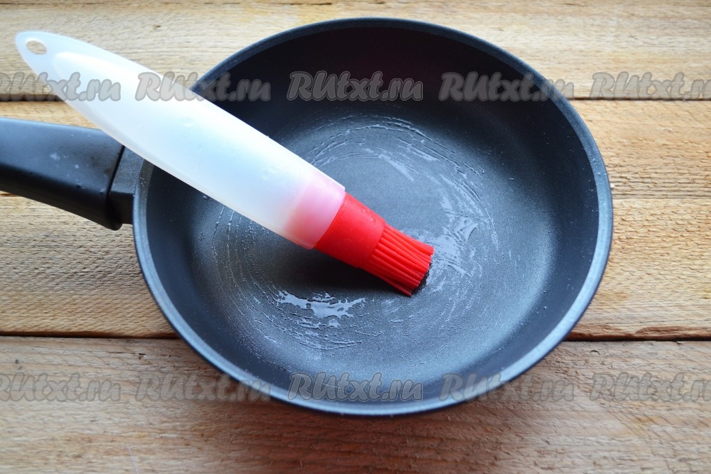 Разогретую сковороду немного смазываем (не наливаем!) подсолнечным маслом. В дальнейшем сковороду нужно смазывать после 2-3 блинов.