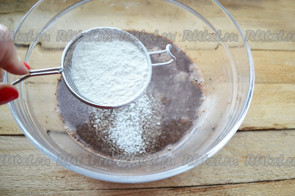 Добавляем дважды просеянную муку и тщательно перемешиваем. Тесто будет готовым, когда станет полностью однородной структуры. Затем следует дать ему отдохнуть минут 15.