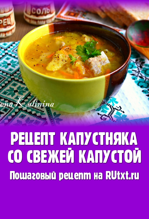 Хочу предложить вам очень вкусное первое блюдо - капустняк со свежей капустой. Обычно капустняк готовится с квашеной капустой и совсем по другой технологии, но попробуйте этот рецепт - вы будете в восторге! Суп необычайно наваристый, ароматный и безумно вкусный!