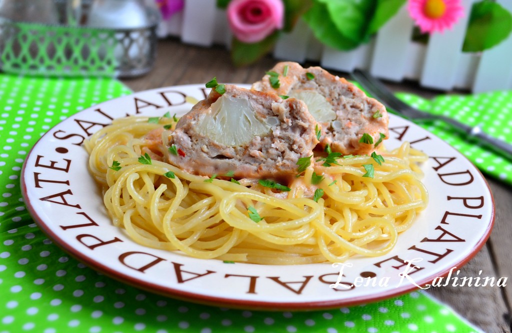 Тефтели с начинкой из цветной капусты - эффектное в разрезе и очень вкусное блюдо, которым можно удивить своих близких. Соус, в котором тушатся тефтельки, получается также очень вкусным. Подать блюдо можно с картофельным пюре, макаронами или отварным рисом. Приготовьте такие тефтели и они отлично впишутся в повседневное меню!