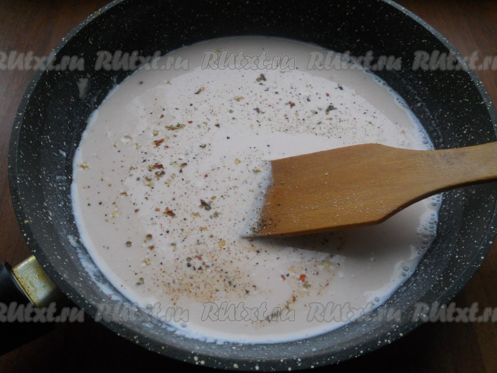 Влить воду, добавить соль, смесь перцев, сахар, тщательно перемешать.