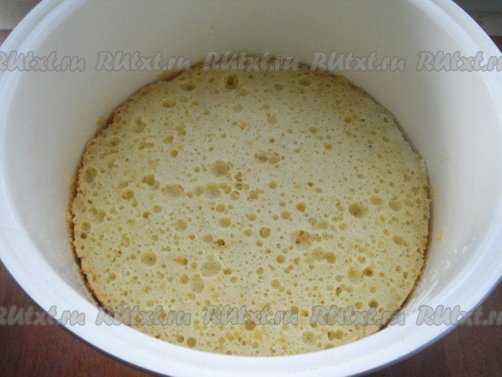 Готовый пирог аккуратно извлечь из чаши с помощью контейнера для варки на пару, перевернув его. Остудить пирог до теплого состояния.