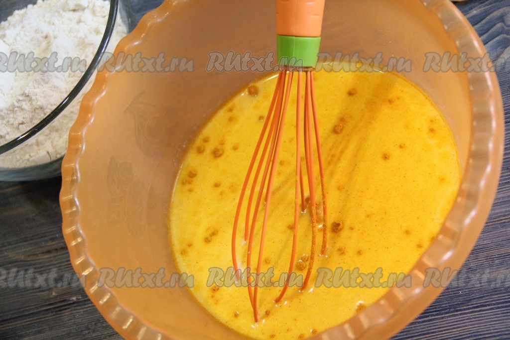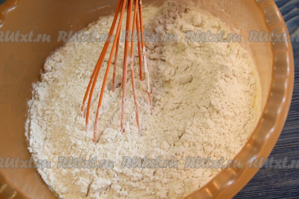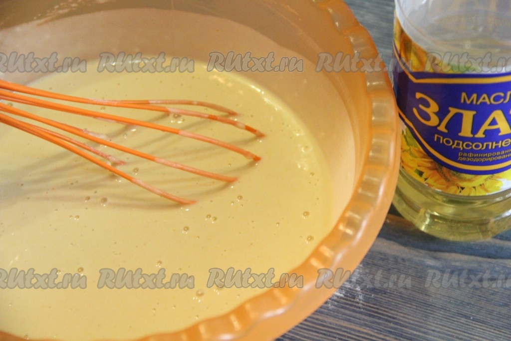 Тщательно перемешать тесто венчиком, оно получится однородным, без комочков.