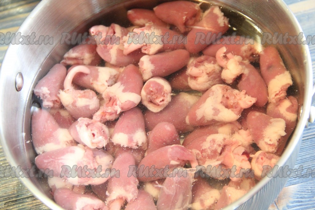 Сердечки промыть под проточной водой. Залить сердечки холодной водой и поставить на огонь.
