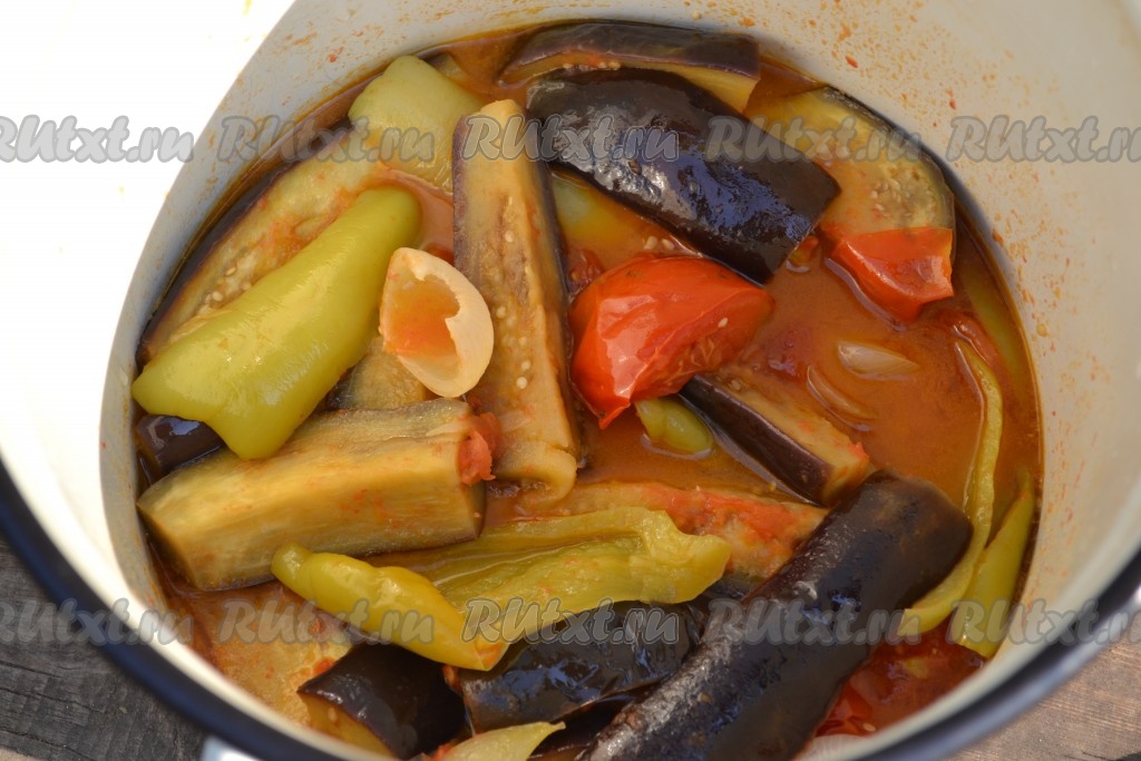 Накрыть кастрюлю с овощами крышкой и отправить на слабый огонь. Кипятить минут 40, периодически помешивая.