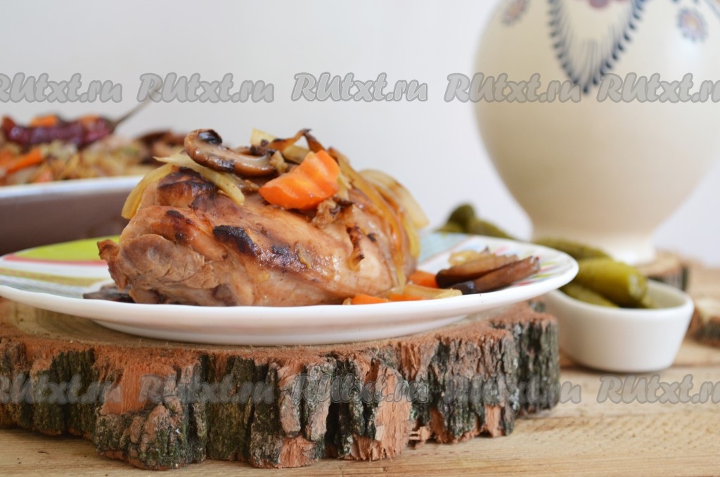 Кролик - это диетическое, вкусное мясо. Способов приготовления крольчатины много: ее отваривают, тушат в сметане, запекают в рукаве, мультиварке. Я предлагаю Вам приготовить кролика с грибами в духовке. Мясо получается сочным и нежным, его можно подать к любому гарниру. Будут довольны вкусом и взрослые, и дети.