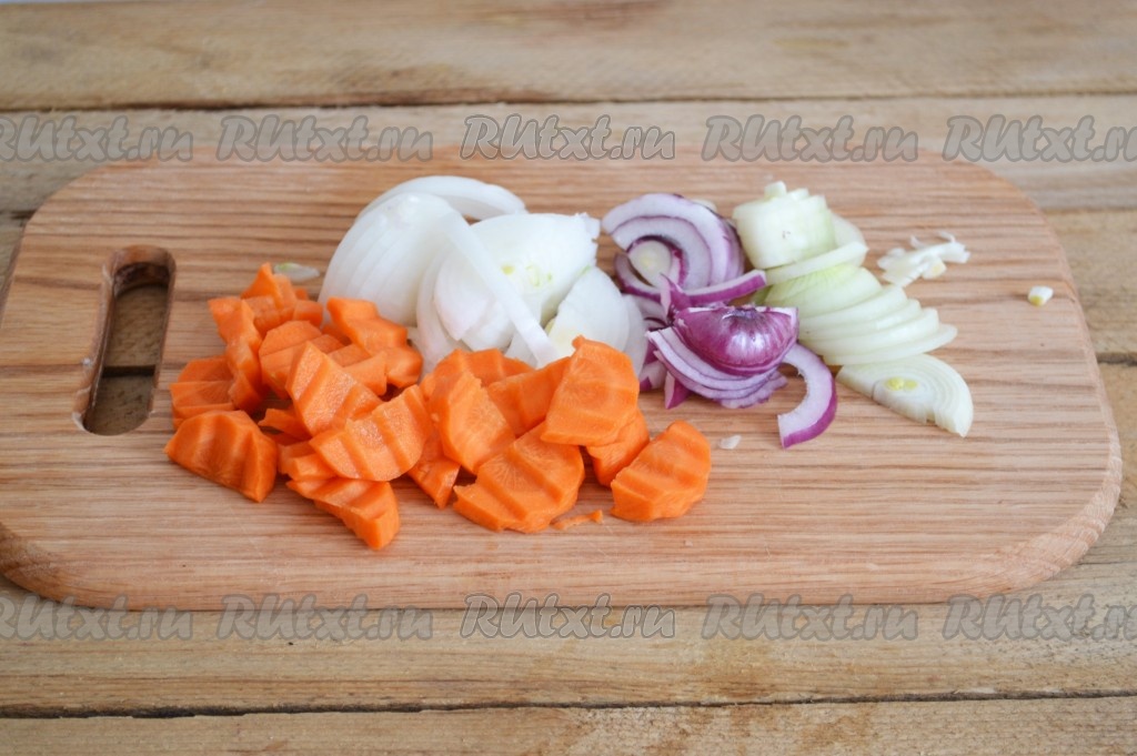 И, помешивая периодически, обжариваем до мягкости и прозрачности лука. Добавляем щепотку соли.