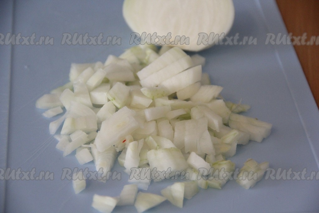 Лук нарезать на мелкие кубики.