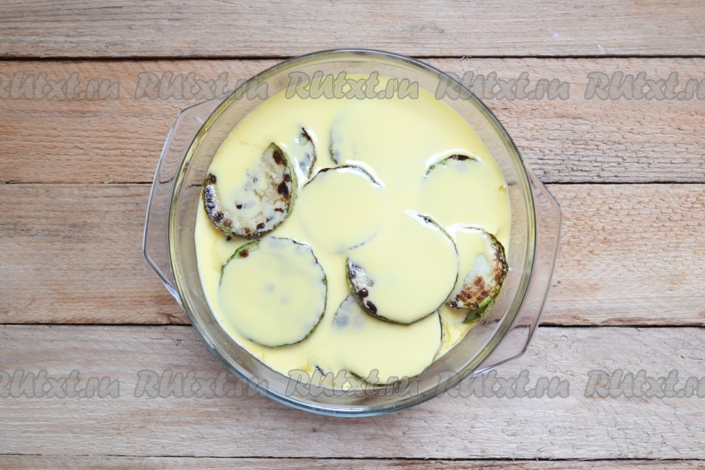 Вливаем в форму с овощами молочно-яичную заливку. Она должна покрыть всё содержимое.