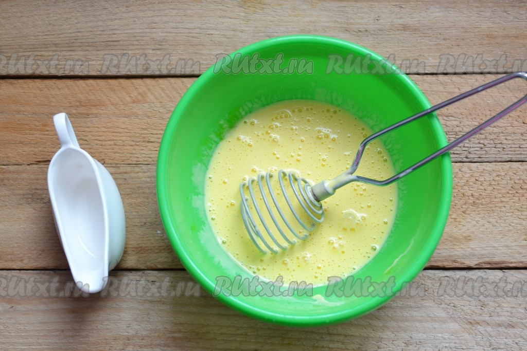 К яйцу вливаем молоко, взбиваем венчиком до однородности.